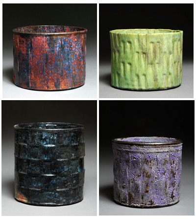 sparing decoration techniques often fired 3-4 times to achieve the depth he strives for in his surfaces - further developed after his extended recent stay in Japan.